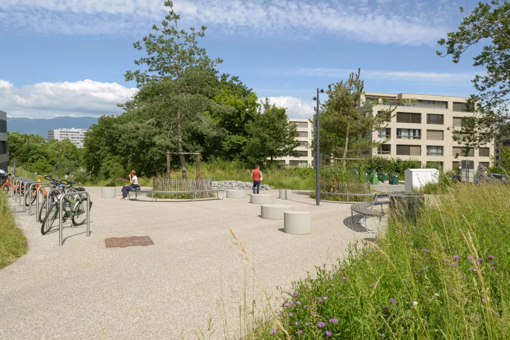 À l’échelle du PLQ, la volonté de réaliser un projet de quartier durable a séduit le jury du concours de 2017, qui, à l’issue du concours, attribue le mandat au bureau In Situ.